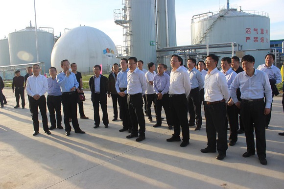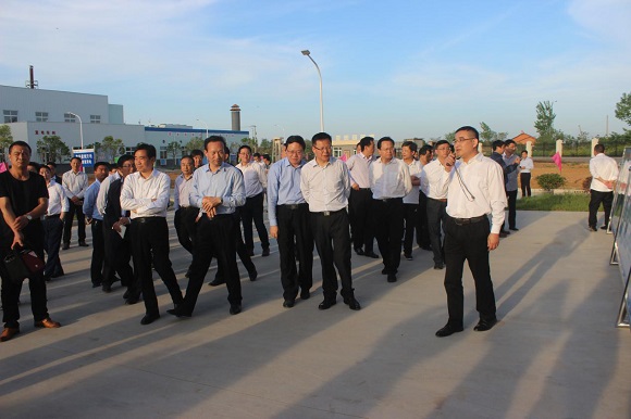 4月17日,荆门市乡村振兴项目拉练暨脱贫攻坚、农村产权制度改革现场推进会议在荆门市京山市召开。当天下午,荆门市市委书记张爱国,市委副书记、市长孙兵率荆门市“四大家”主要领导、相关部委办局负责人、各区县主要负责人80余人莅临湖北农谷地奥生物科技有限公司进行了现场观摩、考察,湖北农谷实业集团副总经理吴国荣、农谷环能公司总经理陈勇陪同考察。